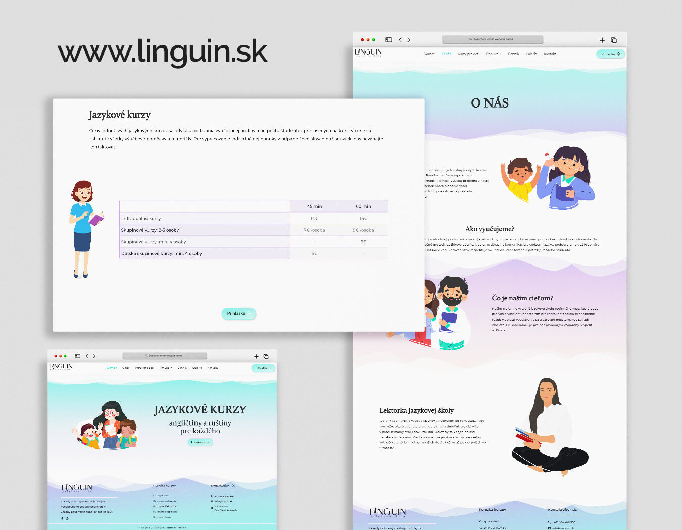 - Úvod/ Domov + 3 podstránky/ O nás, Služby, Kontakt…